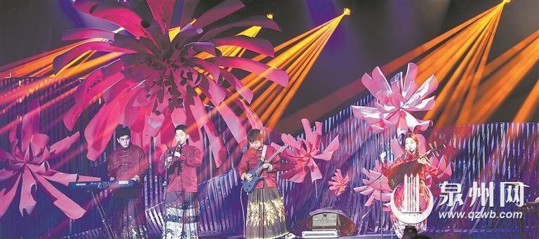 舞台上,蓝色缎带模拟的海浪与火红刺桐花相映成趣,南音与摇滚交织的音乐中,故事情节跌宕起伏。舞蹈演员以灵动的肢体语言,诠释着文化传承与时尚追寻的碰撞,展现泉州与世界的对话。