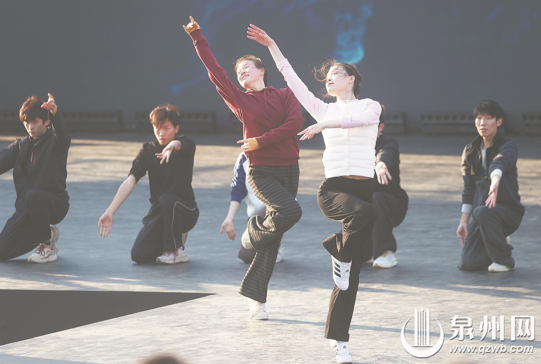 昨日下午,参与演出的演员们正在熟悉舞台。