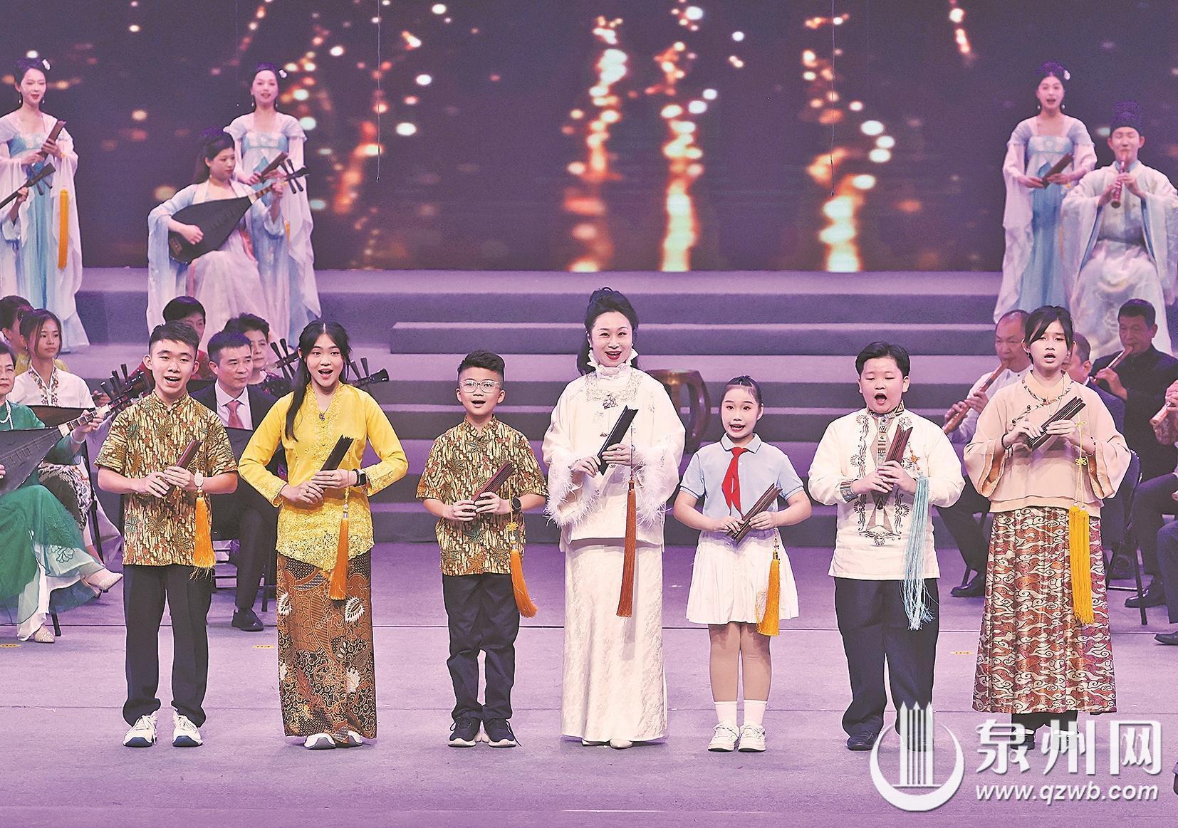 在“乡音古曲情不断”篇章,海外南音社团及港澳台弦友代表联袂演绎《远望乡里》,泉州古方言的婉转曲调里满是游子对故土、对亲人的眷恋。“薪传不息越千秋”篇章则尽显传承活力,二度牡丹奖获得者庄丽芬带领印尼、马来西亚、菲律宾及泉州本地的中小学生唱响《风打梨》。压轴登场的南音名谱《梅花操》大合奏,更是集结海内外社团、传承中心与青少年群体,以“煞谱”器乐合奏,借梅花礼赞高洁情操,为专场演出画上圆满句号。