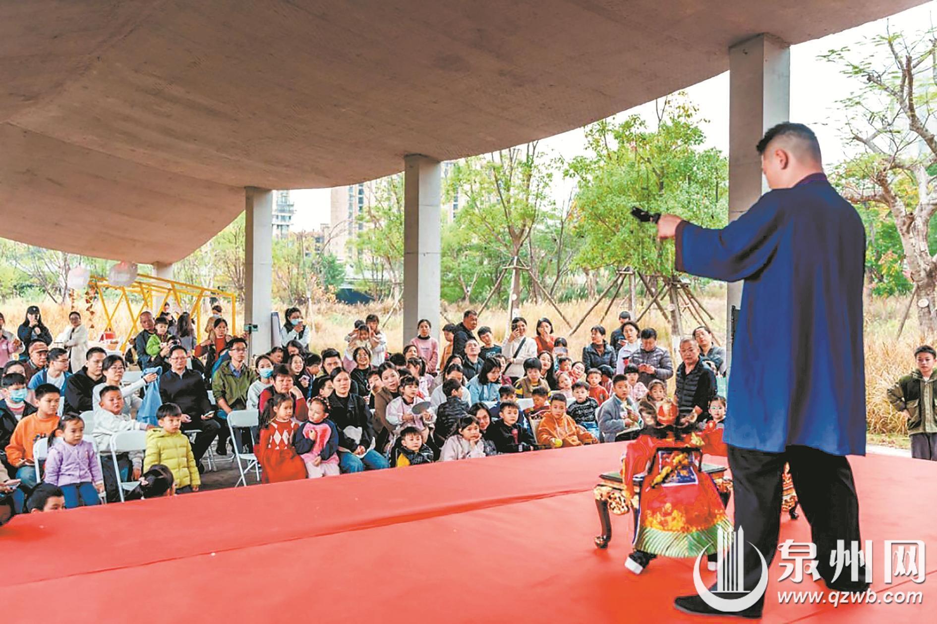 13日,泉州国际木偶展演把非遗好戏“搬”进晋江九十九溪流域田园风光项目,由泉州提线木偶戏传承保护中心带来提线木偶《折子戏专场》,为市民游客献上一场融合自然与传统的文化盛宴。作为入选联合国教科文组织非遗优秀实践名册的“活化石”,提线木偶以36根丝线操控的绝活,将传统故事里的角色演得灵动飘逸——指尖轻捻间,武将的威风、小生的温婉都在溪畔稻田边鲜活起来。(融媒体记者许雅玲 通讯员蔡志艺 摄)